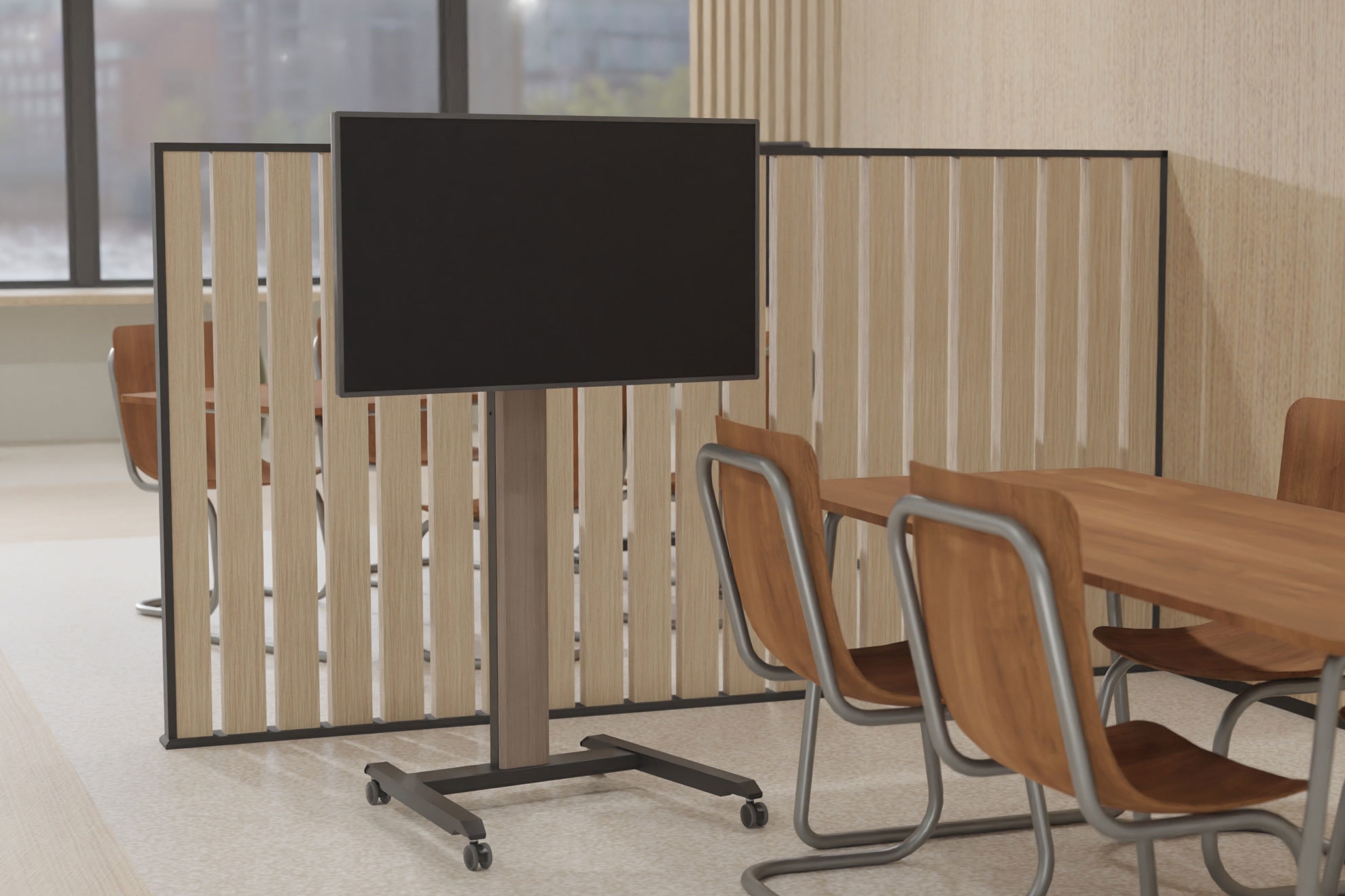 お洒落なデザイナーズオフィスにも合わせやすい 木目調デザインの液晶テレビ用ディスプレイスタンドを 6月14日(水)に新発売!