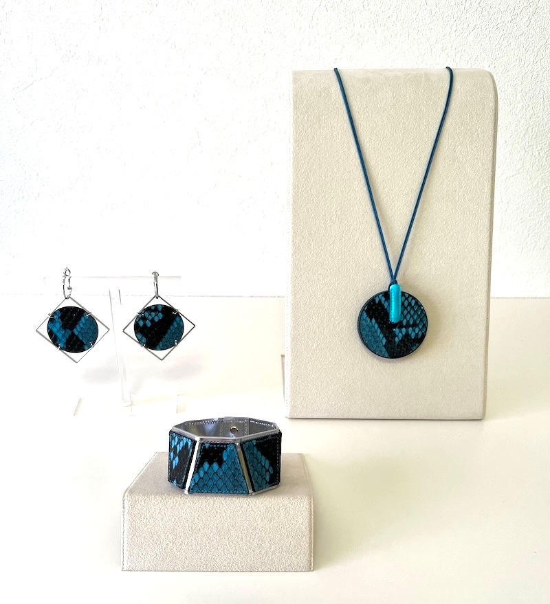 イワタ ヒデトが婦人靴デザイナーとして15年のキャリアを経て立ち上げたブランド「DETOW」。靴作りで培った技術と知識を活かし、イタリアやフランスの上質な素材を使用したレザーアクセサリーや小物を一点一点手作りで制作しています。2025年の干支「巳」にちなみ、パイソンレザーを大胆に取り入れた新作も展示。アート性の高い独創的な作品も含め、通常のポップアップショップでは味わえない特別な世界観をお楽しみいただけます。