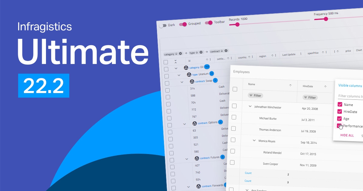 Ultimate 22.2では、最新のBlazorグリッド一式が収録されており、業界最多の機能と最高の性能を備えています。