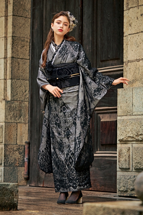 立体的な花モチーフをあしらった、クラフト感のある着物でフレンチシネマの主役のような、"大人かわいい" を手に入れて。