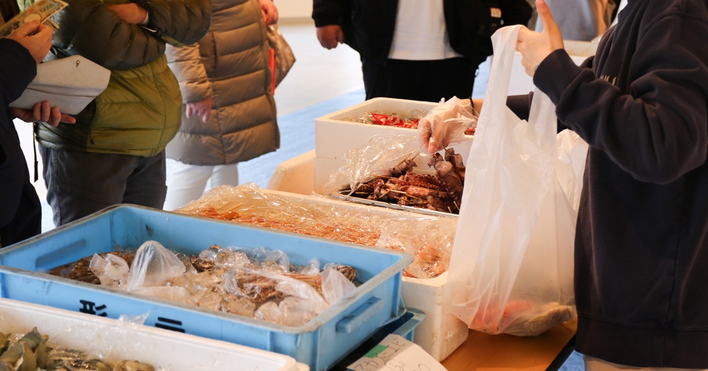 冬の味覚といえばカニ!今回の目玉は、大人気の紅ズワイ。少し訳ありですが、美味しさは抜群の紅ズワイを特別価格で販売します!さらに、舌平目、タイ、スズキなど、旬の魚が豊富に揃います。購入した魚は、その場でスタッフが無料で捌いてお渡しするので安心&手間いらず!1月は一年の中でも旬の魚が多い季節。地元漁港だからこそ味わえる、この鮮度と価格をお見逃しなく!