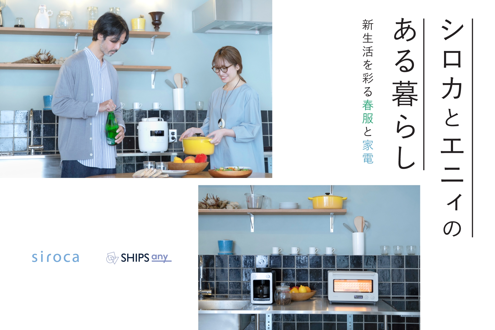 ファッションを通して、お客様の日々の生活を豊かに過ごせるコトも提案する「SHIPS any」では、新たな生活の準備に向けて『新生活』をテーマに、高い機能性とどんな空間にも溶け込むシンプルなデザインのキッチン家電や生活家電を提供している人気ブランド「siroca(シロカ)」とコラボレーションしたスペシャルWEBコンテンツを公開します。WEBコンテンツでは、日々の生活を快適に、豊かに、楽しくしてくれるキッチン家電とコーディネートをシーン別に提案します。