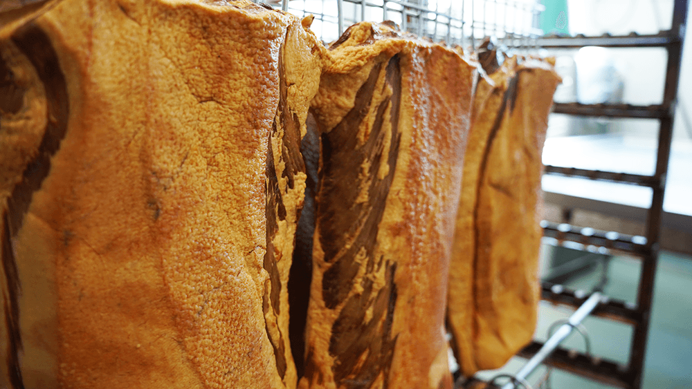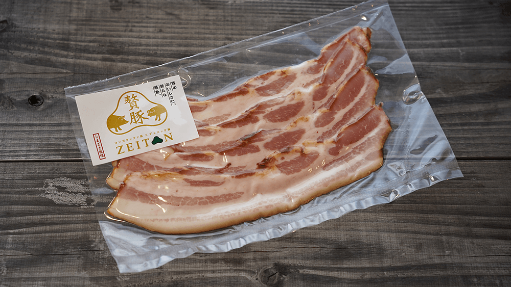 その日本で唯一無二のブランド豚の肉の旨味、脂身の甘み、熟成と燻製の香りを頂点まで高め、「今までのベーコンって何だったのか?」と食べた人の概念が変わります。