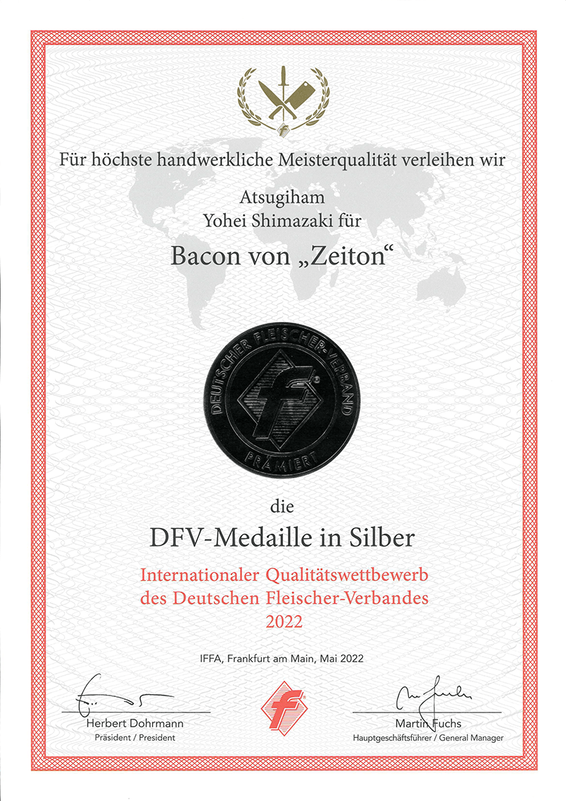 今回、もっと豚肉の美味しさ、旨味を味わっていただける商品を作ることは出来ないか?と考えドイツ国際コンテストにて世界ランキング入りした職人が、自社農場産ブランド豚『贅豚』を使用し独自の熟成メソッドを使用した『熟成ベーコン』を開発いたしました。