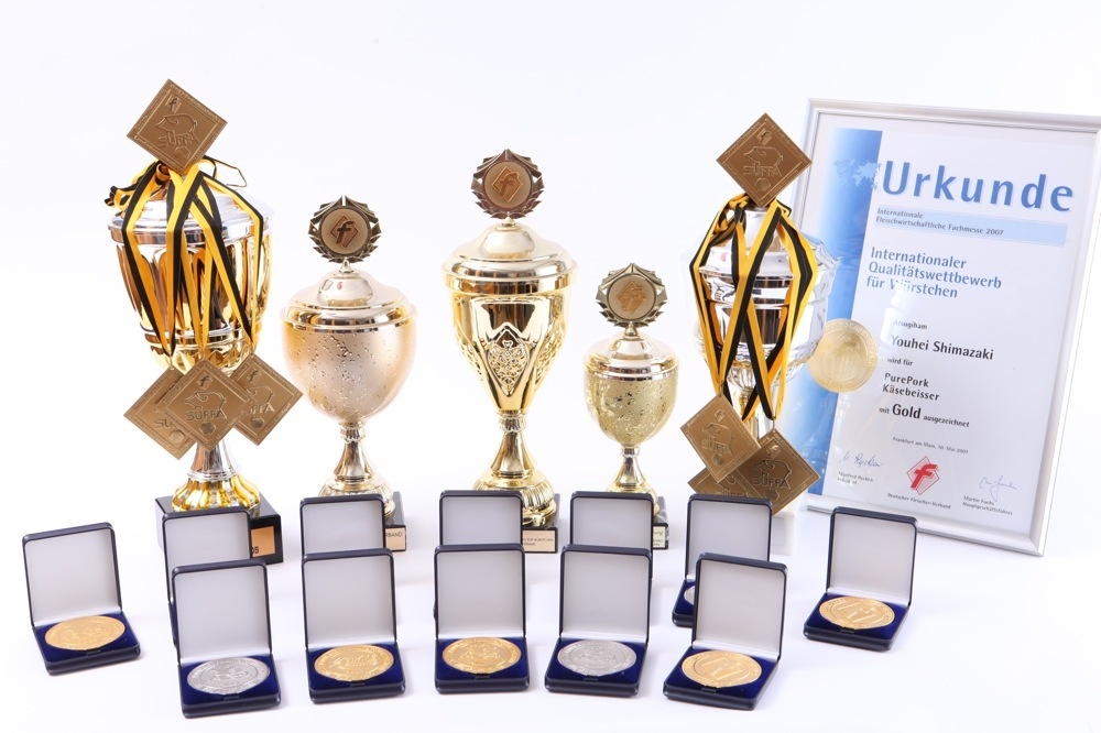 ドイツ国際コンテスト「IFFA」にて、世界ランキング3位入賞の快挙をなしとげた厚木ハム代表職人の嶋崎 洋平が肉の選定から、塩分濃度、香辛料選定はじめ製造の全工程を管理。