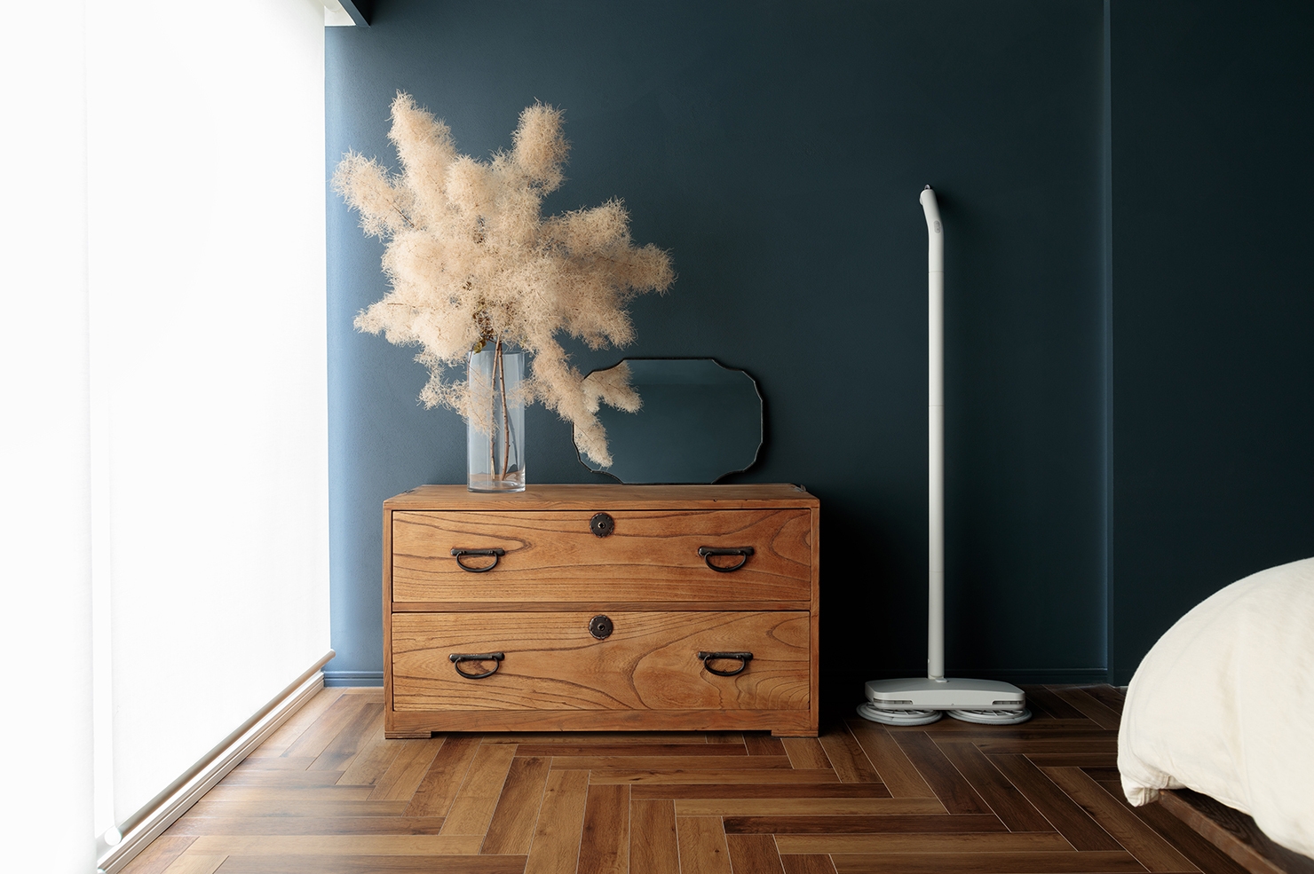 自立するのでスタンドも不要。使っている時も使っていない時も佇まいの美しい電動モップです。