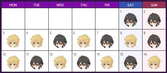 日程により朔間さん、羽風さん、どちらのお祝いを行なうのか異なりますので、参加をご希望の方はカレンダーを確認のうえ、チケットのお求め間違いのないようご注意ください。