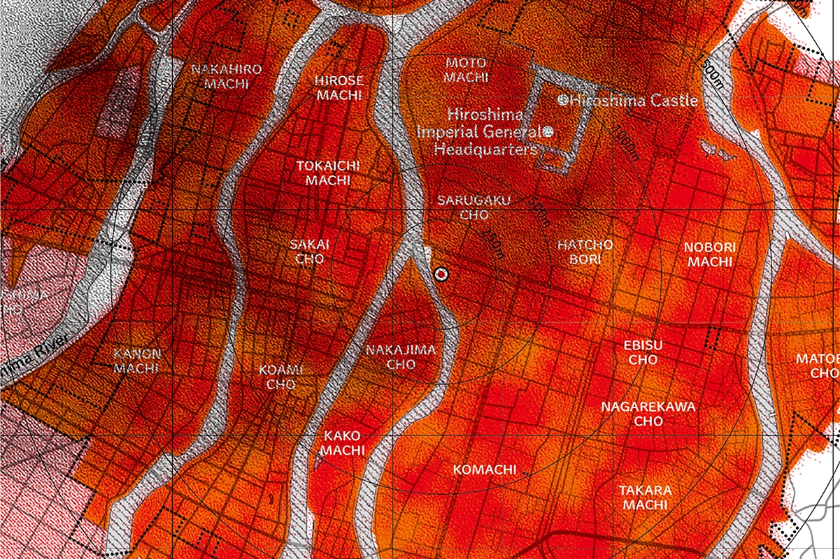 漠然としかわからない被爆範囲や残されたモノたちを、すべての被爆遺産を掲載した地図を作成すると共に、原爆によりどのような被害を受けたのかを記した地図を作成し体感し、デジタルではなく残るものとして作りたいと考えました。