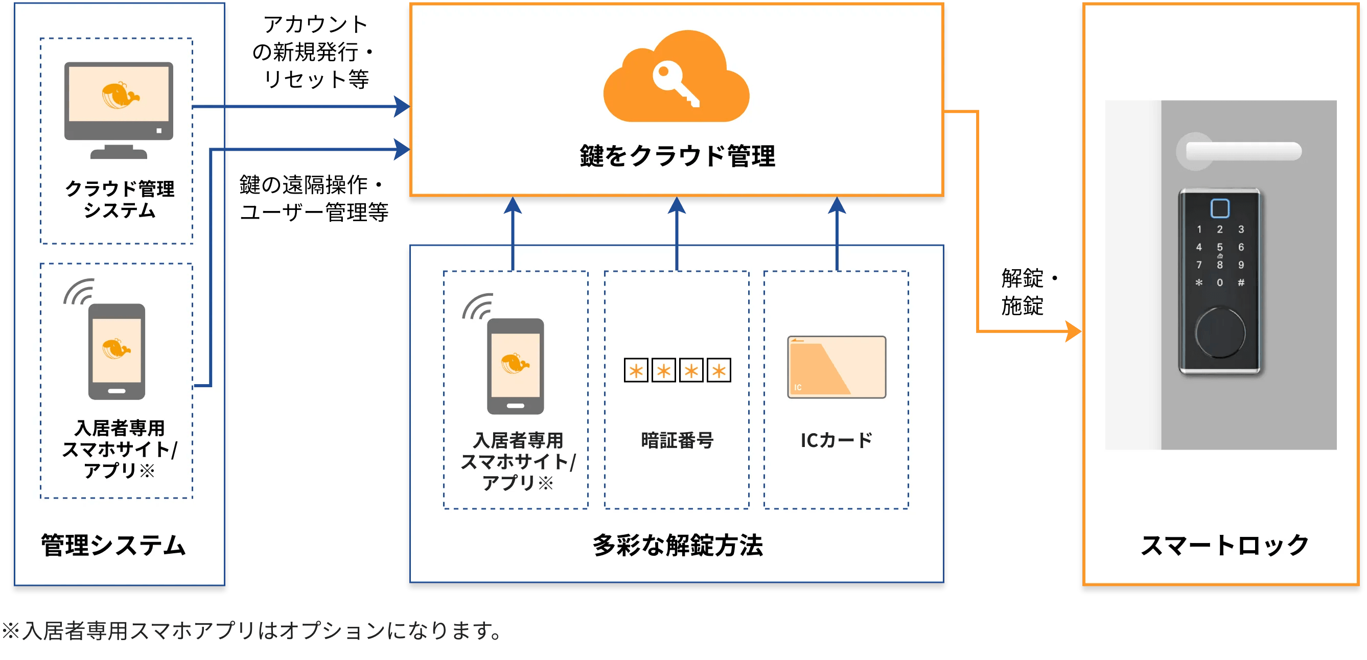 物件オーナーのアカウント管理も入居者様の鍵の管理も全てクラウド上で可能になります!