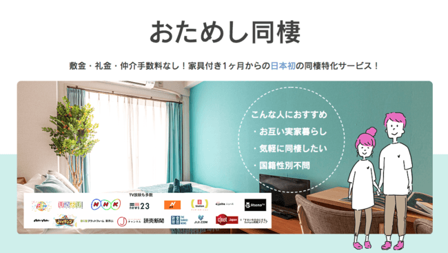 【駒込でおためし同棲 コロナ破局を防ぐ】保証人不要/初期費用なしで同棲がお試しできる日本初の同棲特化サービス「おためし同棲」で駒込エリア開始【マンスリーマンション】