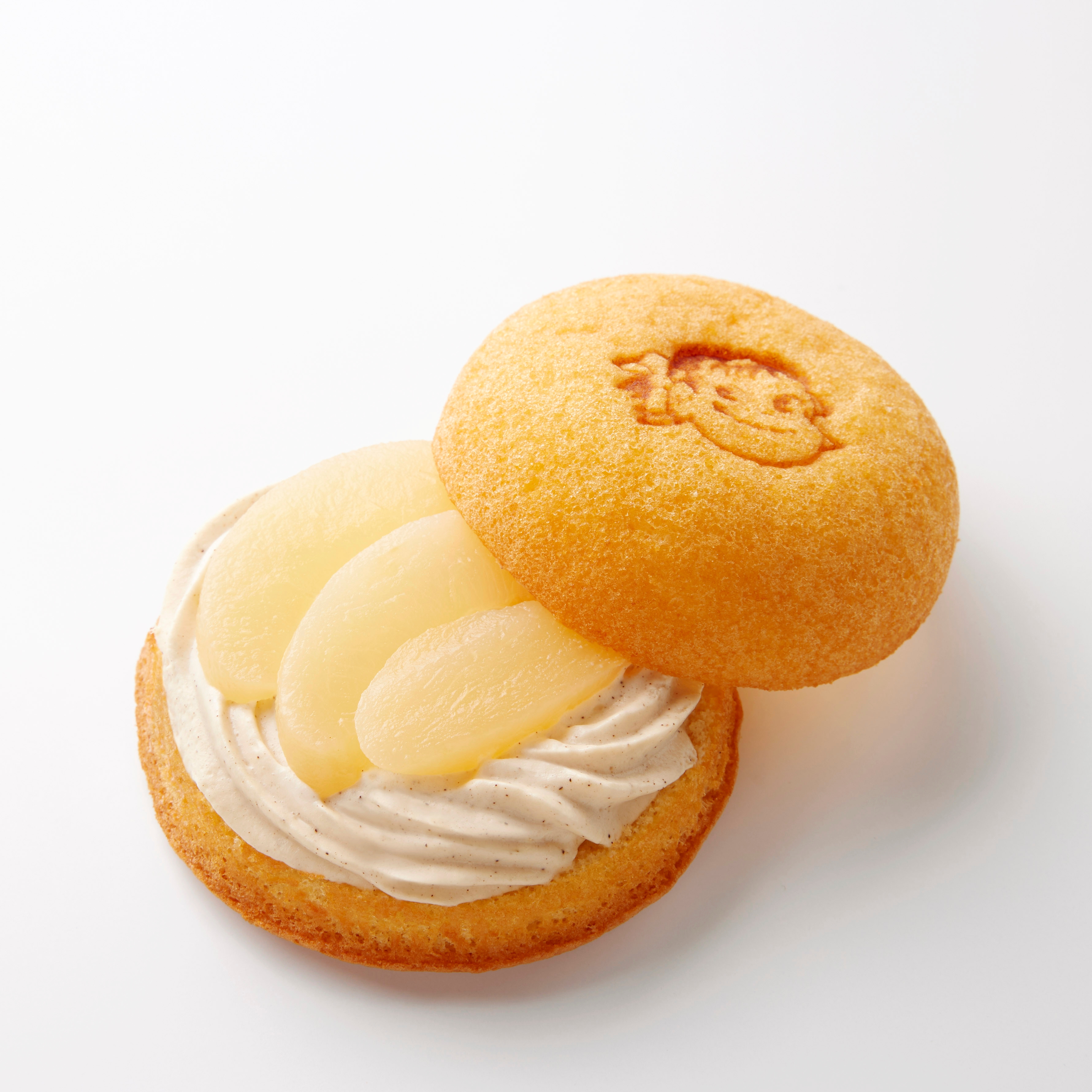 香り高いアールグレイ紅茶クリームを絞り、スライスした白桃シロップ漬けをトッピングしました。