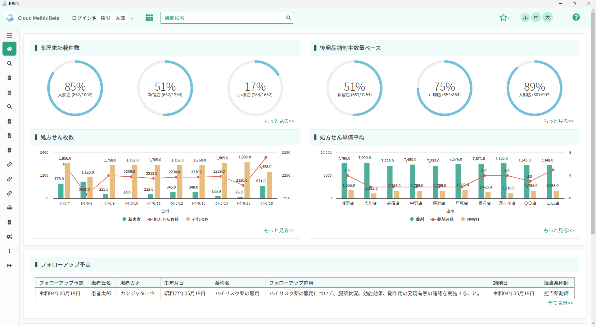 MDSOLが提案する次世代コミュニケーションサービスのうちの、クラウド版電子薬歴サービスでは、『必要な人に・必要な時に・必要なものを、簡単、かつしっかりと』をコンセプトに開発を進めています。簡単なだけのシステムではなく、詳細な指導が必要な患者様には『しっかり』と、短時間での指導が必要な患者様には『スピーディ』に。処方変化、患者情報、過去の薬歴など、必要情報をシンプルに表示する事で、短時間での服薬指導計画の策定を支援する他、患者タイムラインをはじめ、“個客”としての患者様と『しっかりつながる』コミュニケーションをサポートします。また、クラウドの特性を活かし、グループ全体のデータを見える化します。
