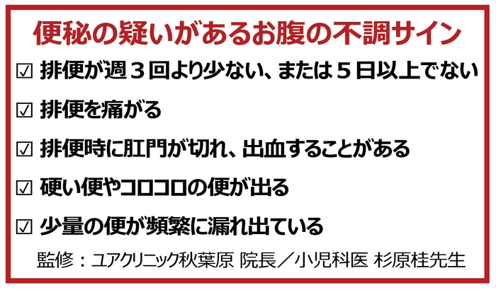 そこで今回は、子どもの便秘に詳しい、ユアクリニック秋葉原 院長 杉原桂先生に、子どもの便秘の現状と、親子でできる予防法について伺いました。