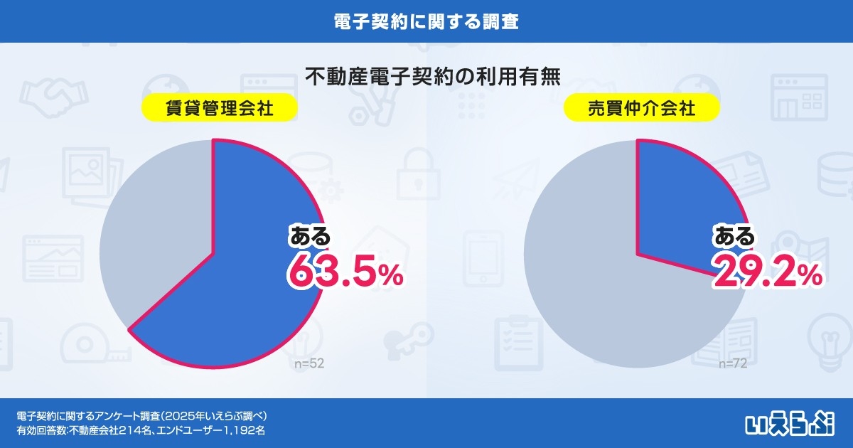 一方で、賃貸管理業(※3)では63.5%、売買仲介業(※4)では29.2%となっており、業態によって電子契約の導入状況には大きな差があることが明らかになりました。