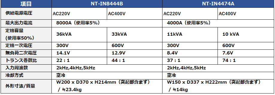 今回の「高信頼性インバータ式溶接電源」(以下 NRW-IN400PA)は、「モータ」及び「電池」市場における新たな接合機器のニーズに対応するため、機能を強化し「モータ」や「電池」の高品質化や高精細化の実現に貢献します。またトランスのラインアップを増やし、幅広い分野のアプリケーションでご使用いただけるようになりました。