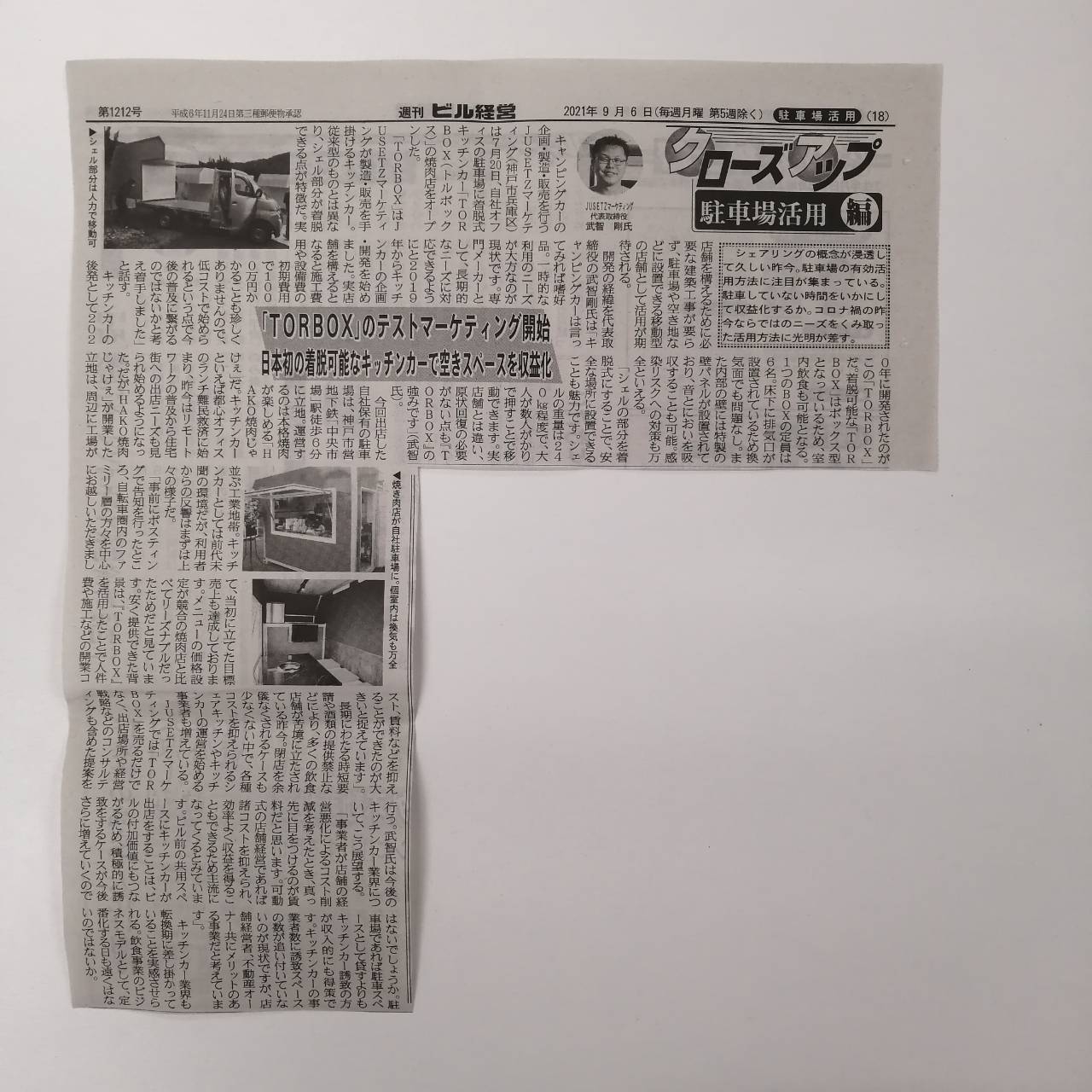 この度、不動産業界専門新聞「週刊ビル経営」の9月6日号クローズアップに掲載されました。