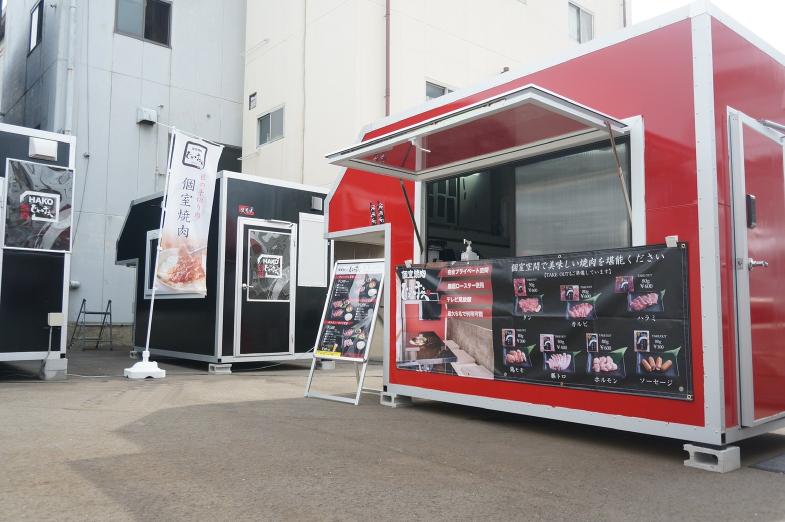 まだもの珍しい移動式個室焼肉で集客・視認効果が高い。