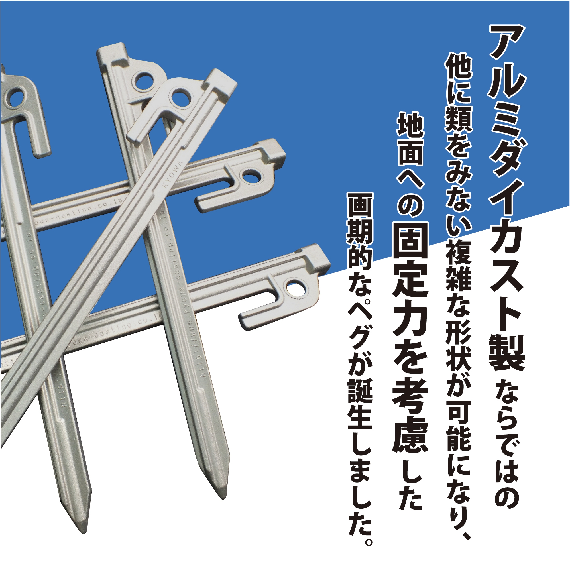 アルミ鋳造メーカーが造る軽量なアルミダイカスト製キャンプ用ペグ「アルペグ」