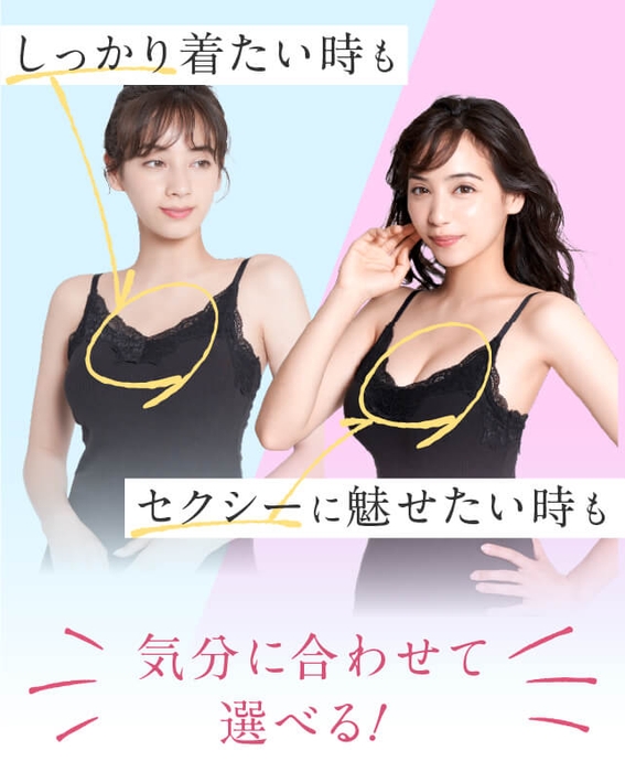 さらに、すべり止め生地でカップ部分とバストがずれるのを防いでくれるため、1日中美バストをキープできます。