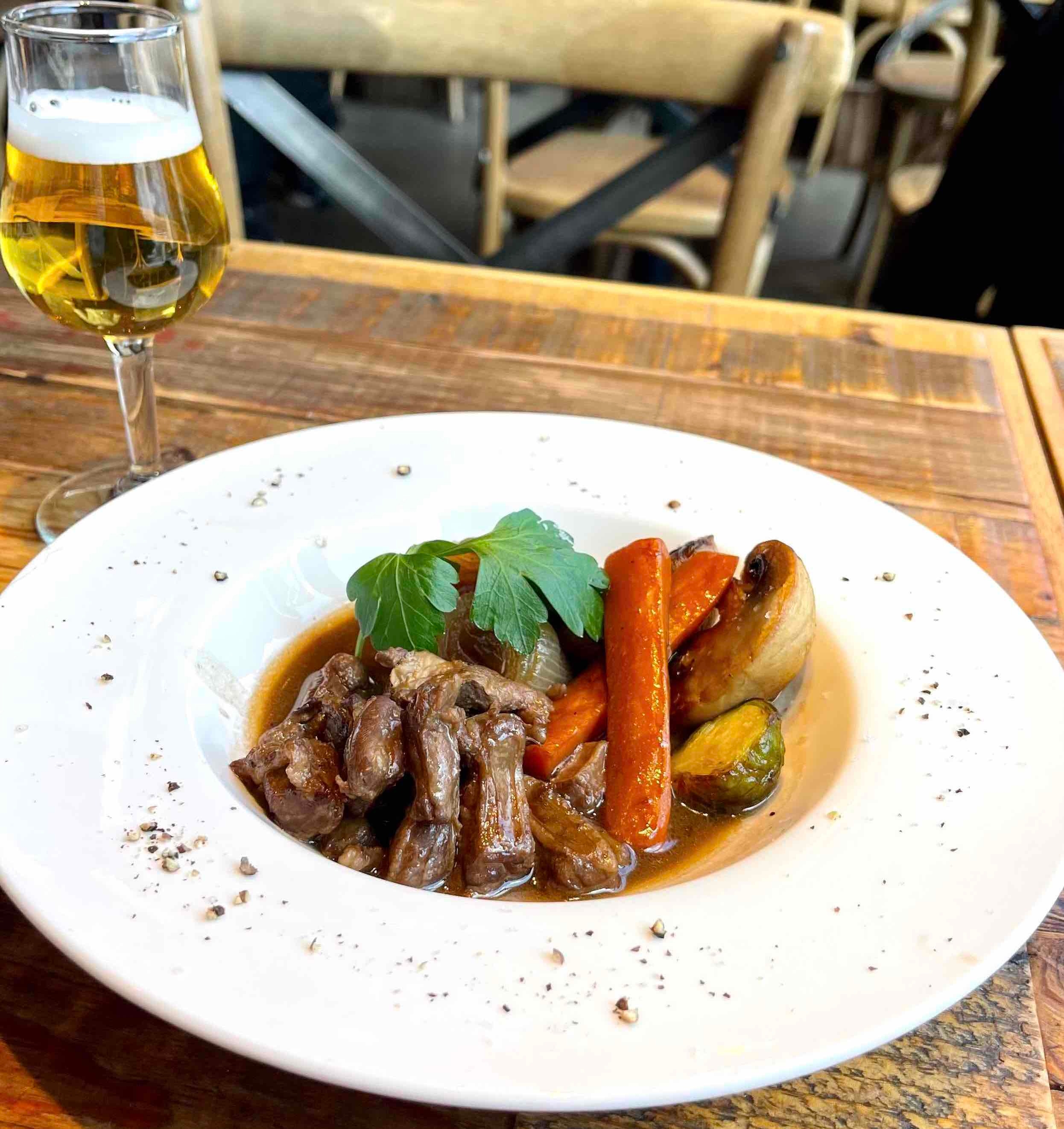 ビール醸造工房を併設した1階にはオープンキッチンやカウンター、テーブル席があり、店員が目の前でタップから好みのビールを注いでくれます。2階は全席に卓上サーバーが設置されており、お得に飲み放題(90分)が楽しめます。常時4~6種ある自家醸造ビールは、出来立てだからホップなどの香りがとてもフレッシュで、季節の限定ビールもそろえています。