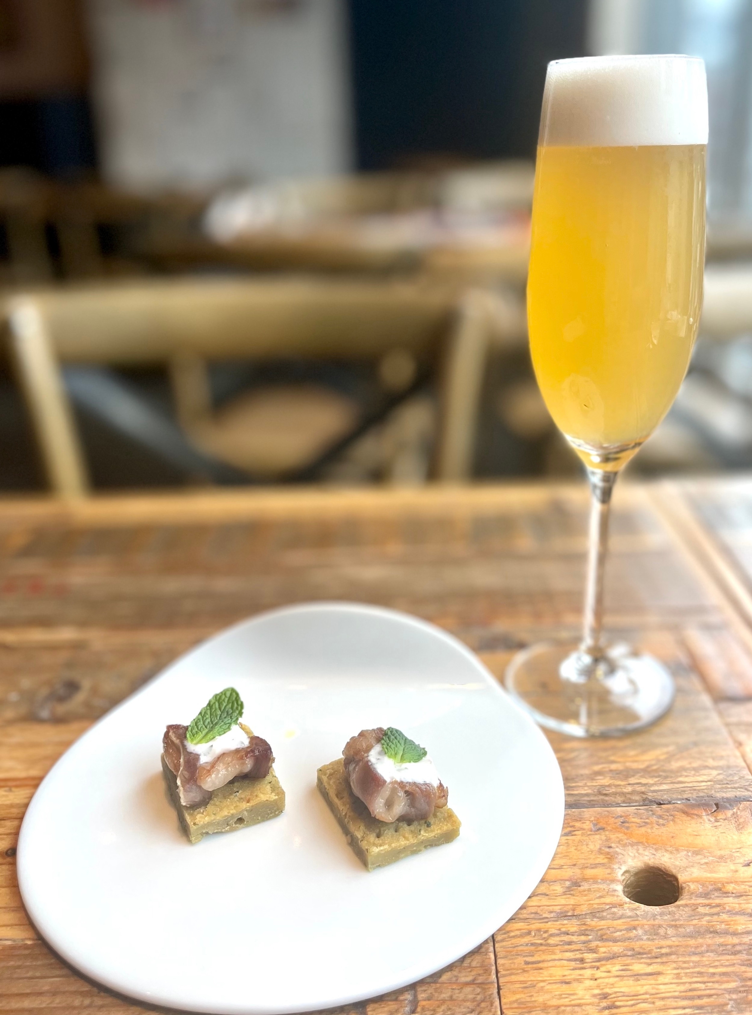 アミューズ:厚真羊のベーコン、ひよこ豆のサブレとヨーグルトソース