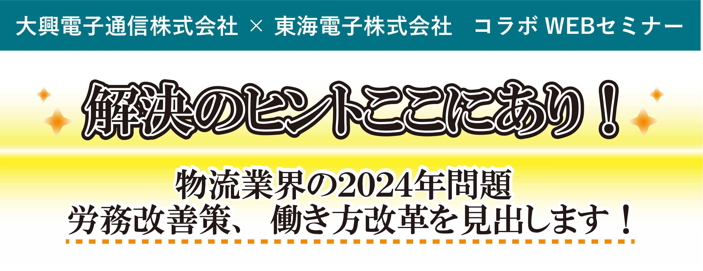 ■詳細はこちらから:大興電子通信×東海電子コラボWEBセミナー「物流業界の2024年問題 労務改善策、働き方改革を見出します!」