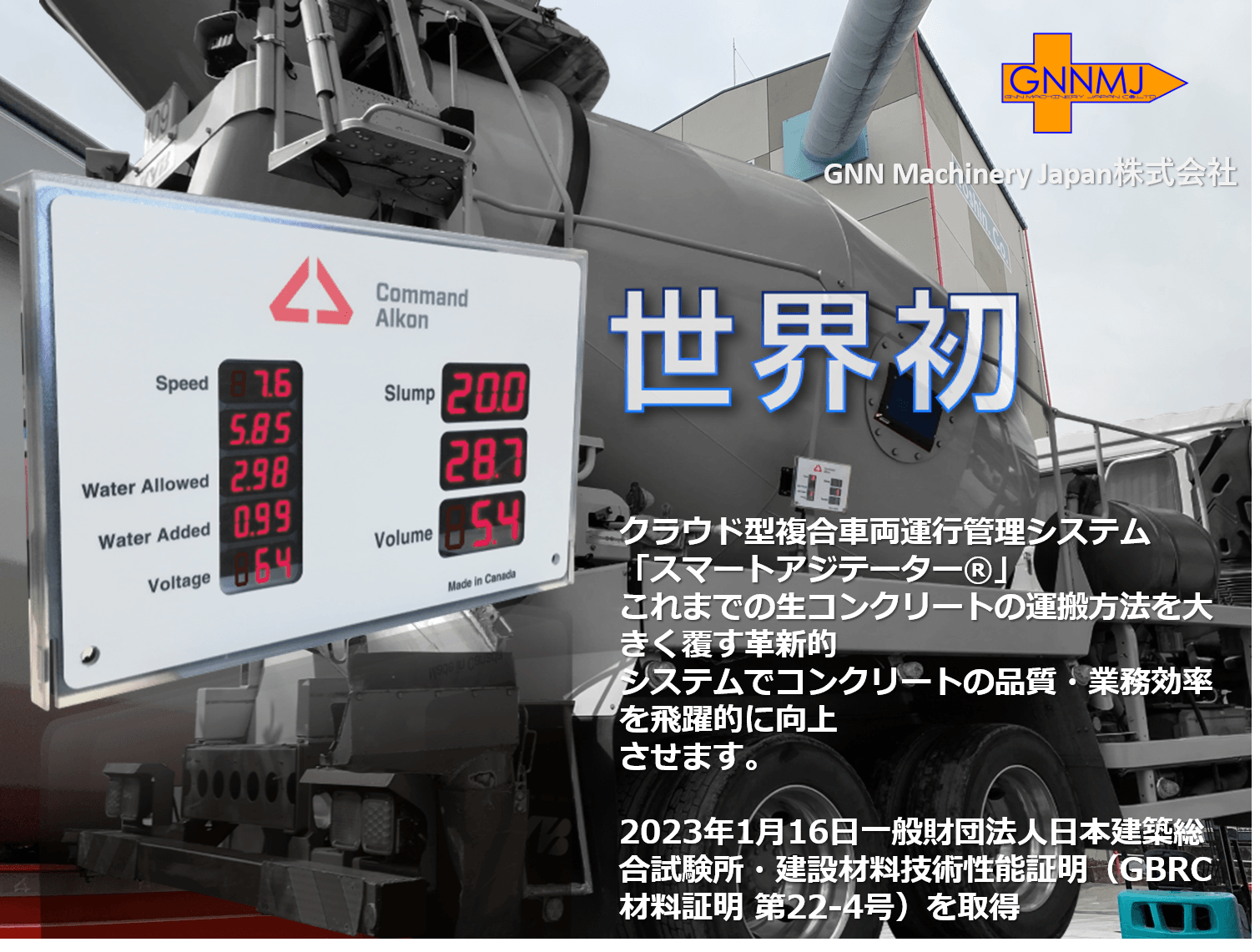 GNN Machinery Japan 株式会社(ジーエヌエヌ マシナリー ジャパン)(本社所在地:神奈川県横浜市戸塚区上矢部町2066番地、代表取締役社長:廣藤 義和)は、日本国内初となる、ICT技術を活用した生コンクリート品質管理装置、スマートアジテーター(R)の新機能として開発された、運搬中のコンクリートの空気量をリアルタイムに計測、記録可能な新デバイス(エアプローブ)の実証実験を日本国内において開始します。