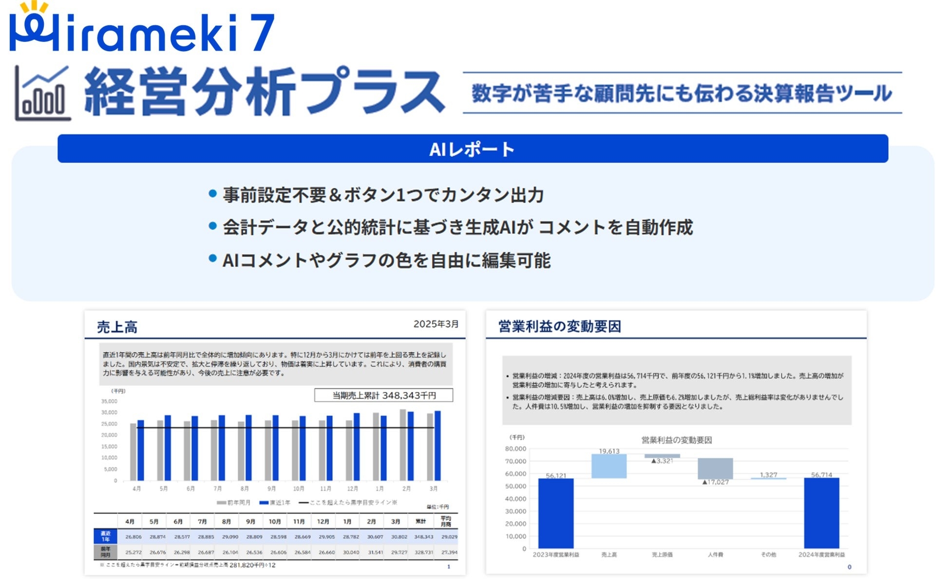 ・中小企業向けDXプラットフォーム『Hirameki 7』 /経営支援サービス「経営分析プラス」