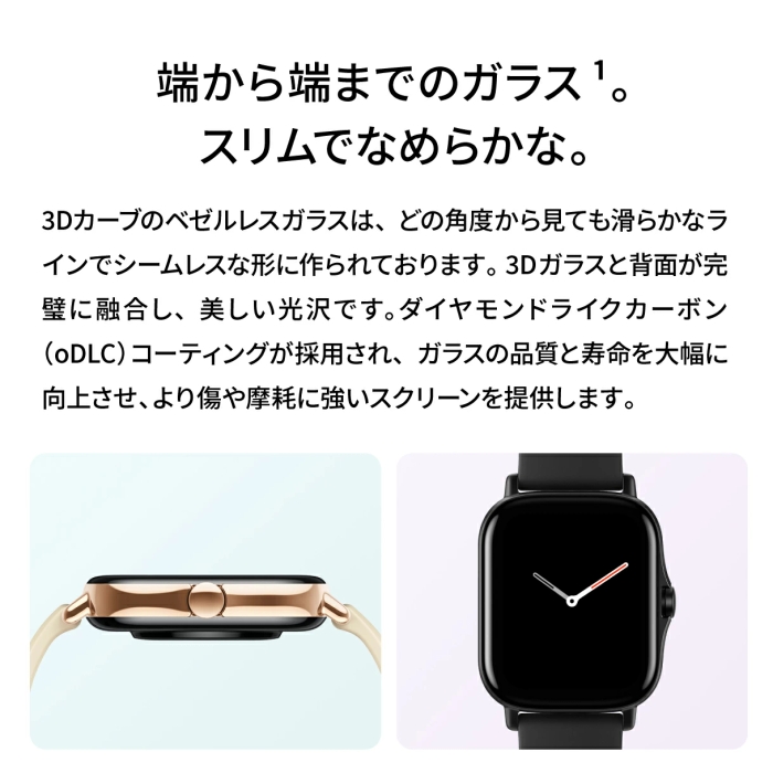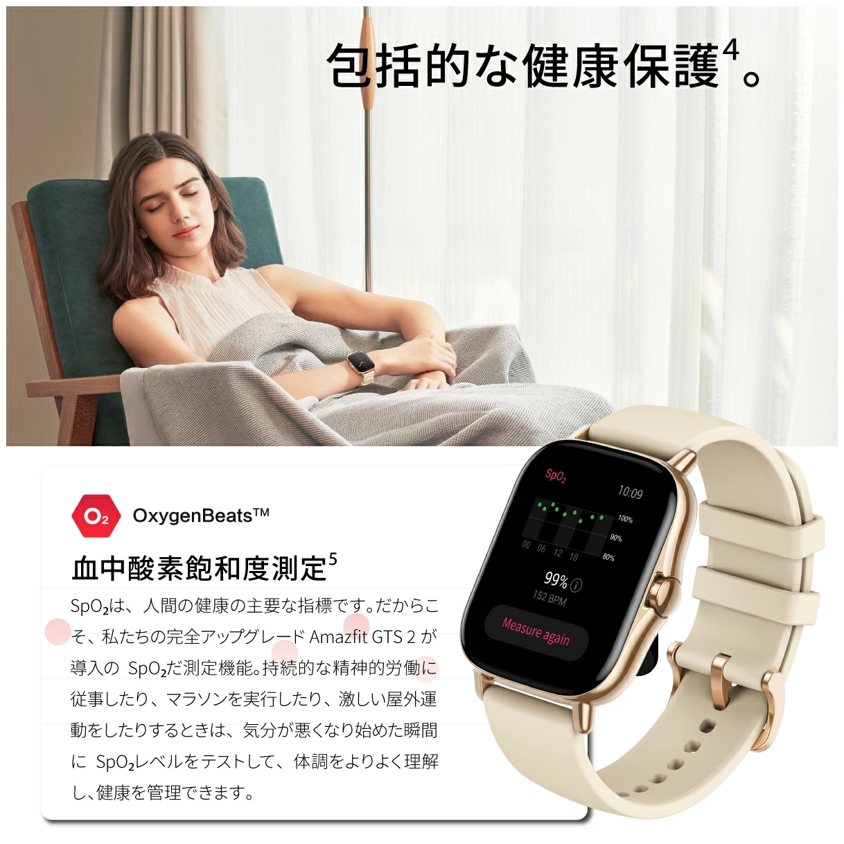 デザイン性と機能性を兼ね備えた「GTS 2」が登場。滑らかな3Dカーブのベゼルレスデザインで、シンプルなのに存在感があります。健康やフィットネスのモニタリングだけではなく、音楽の保存と再生も可能でアマゾンアレクサビルトイン!多機能なスマートウォッチです。
