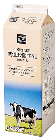 那須高原の生乳使用。乳牛に与えている穀物は非遺伝子組み換えです。
