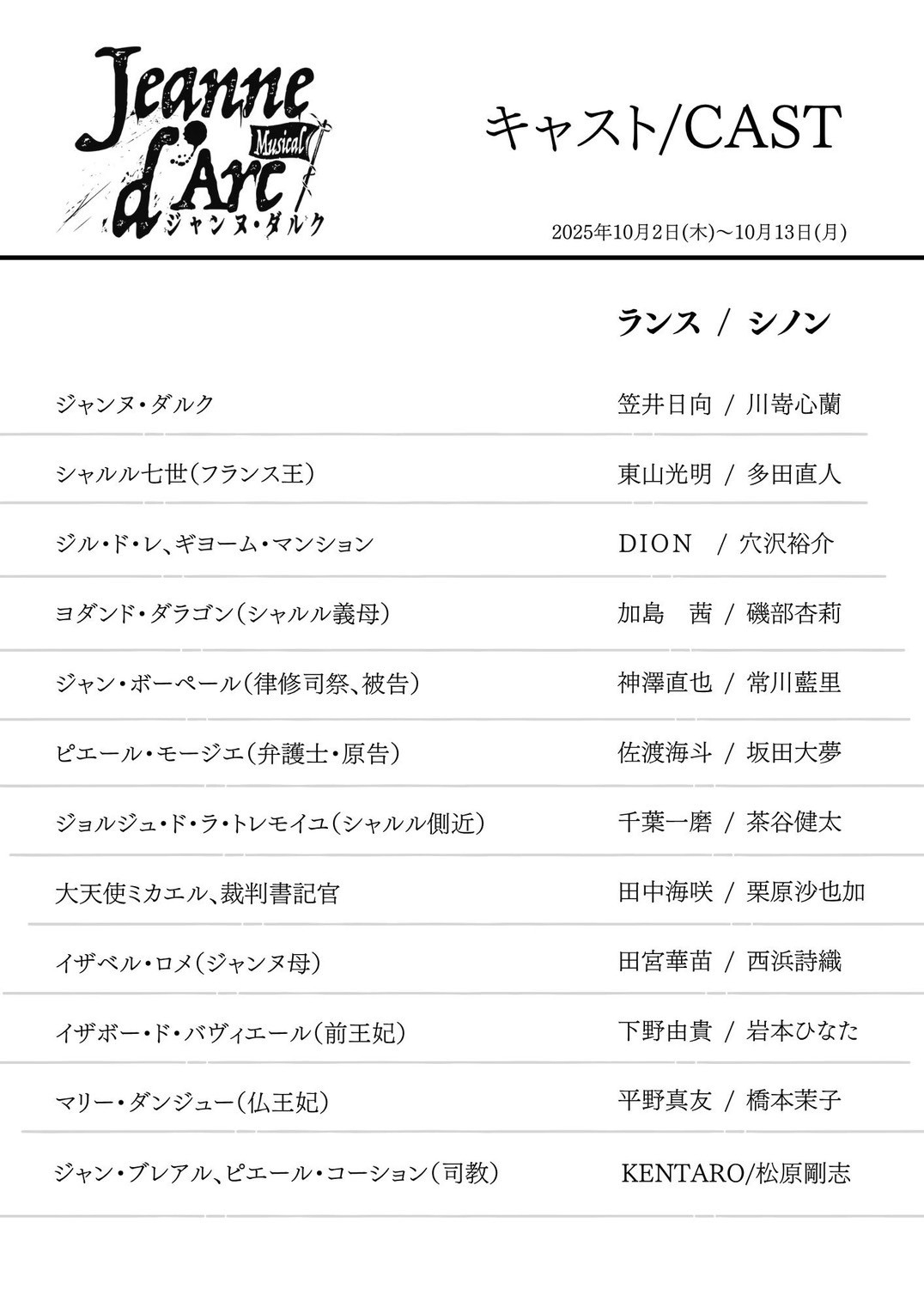 ダークヒーロー、フランス王・シャルル7世役には、ミュージカル『SMOKE』『赤と黒』『僕とナターシャと白いロバ』などで存在感を放つ東山光明と、舞台『刀剣乱舞』十口伝 あまねく刻の遥かへや『【推しの子】2.5次元舞台編』など話題作への出演を重ね、演劇集団キャラメルボックスの中核を担い続ける実力派・多田直人。