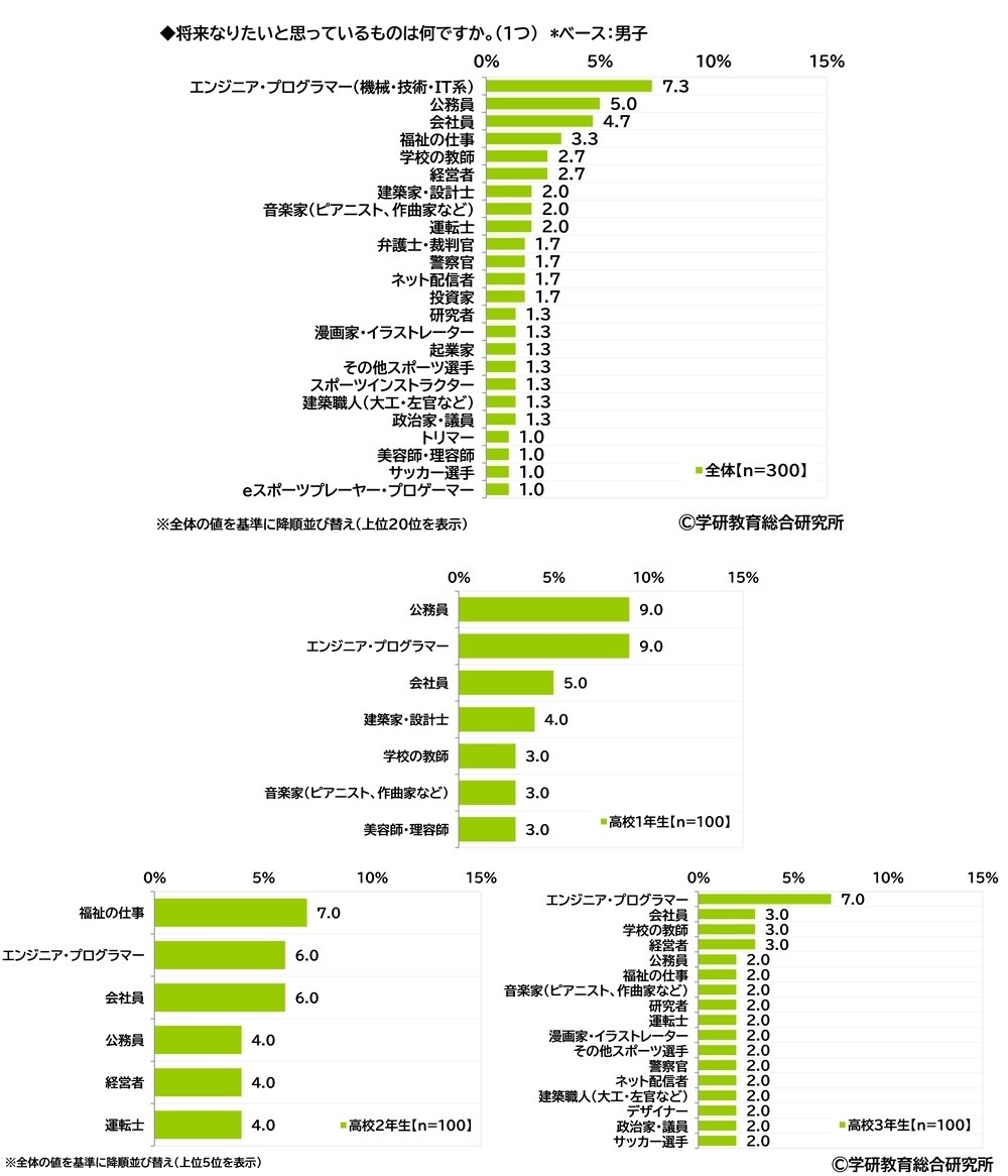 ★高校生が将来つきたい職業 1位「公務員」、2位「エンジニア・プログラマー」、3位「看護師」