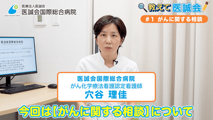 この短編動画は、医誠会国際総合病院の医師や専門スタッフが講師・監修を務めるシリーズ「教えて医誠会」の一環として制作されており、がんに関する相談について3回に分けて配信します。第1回は「がんの告知の際のサポート」、第2回は「がんになることで起きる問題のサポート」、第3回は「医誠会国際総合病院のがんの支援とがんサロン」をテーマとしています。