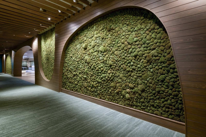 <本物の苔を用いた、幅8.5mの巨大な「苔アートウォール」>