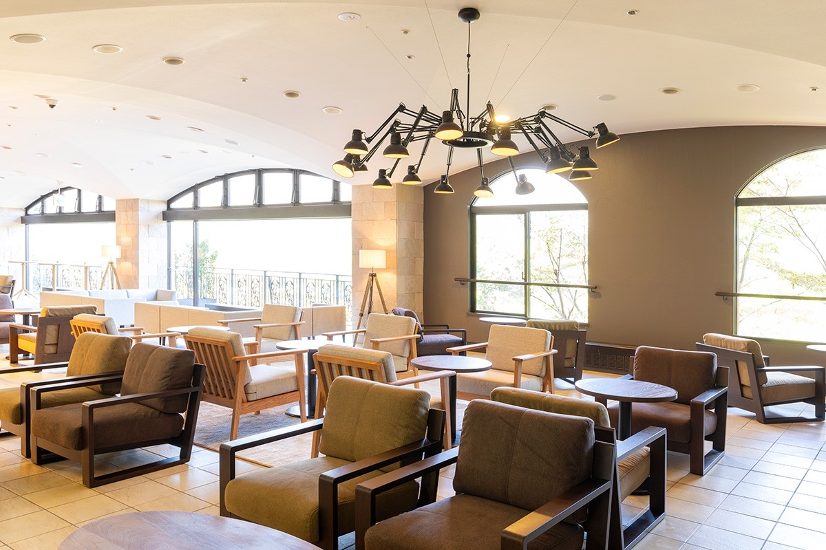 ラウンジには暖炉を設け、大きな窓からは美しい箱根の眺望を望むことができ、ゆったりとソファでおくつろぎいただけます。目の前に広がる空と緑を全身で感じたり、炎の揺らめきを眺めてリラックスしたり、思い思いの贅沢な時間をお過ごしください。
