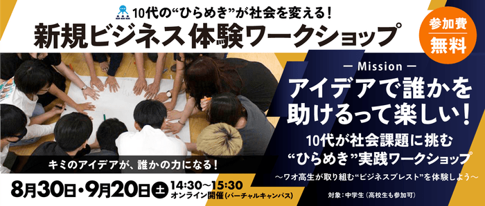 【ワオ高校・ビジネスコース】中学生の“ひらめき”が社会を変える!8/30、9/20(土)新規ビジネス体験ワークショップ開催