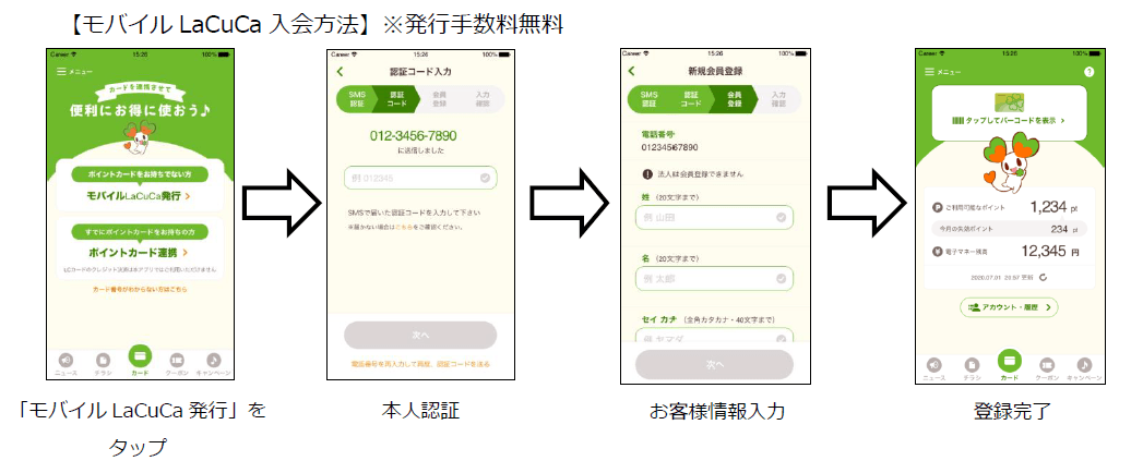 ※すでにLaCuCaカードをお持ちの方はモバイルLaCuCaへの入会はできません(新規入会ではなく、アプリとの連携をお願いいたします)