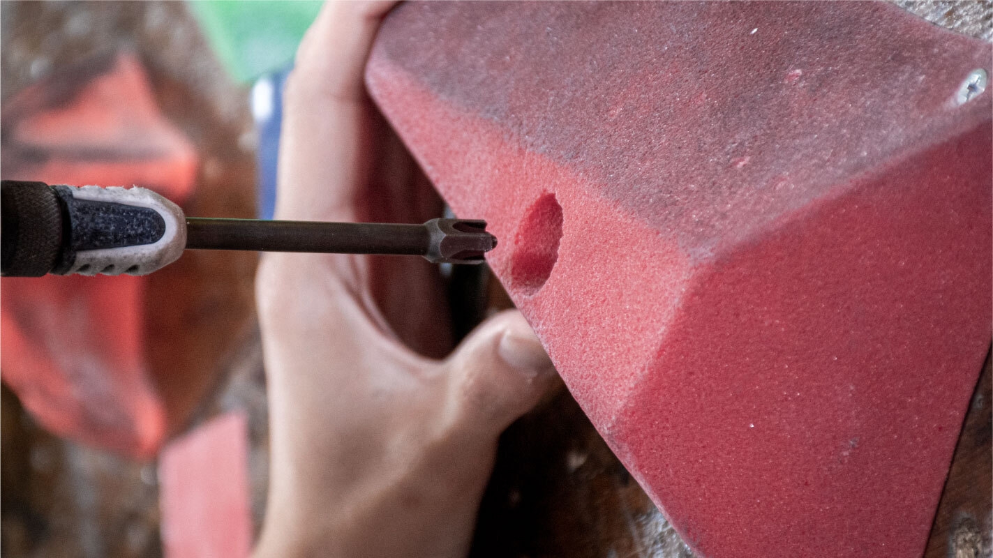 クライミングジムでは、顧客であるクライマーたちの満足度や技術向上のため、定期的にホールドの位置を変更します。一度に百個単位のホールドを取り付け・取り外すこともあります。