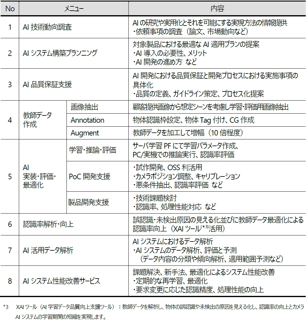 ・お客さまの画像認識AIシステムの構想・検討から実運用(量産)までをワンストップで支援します。