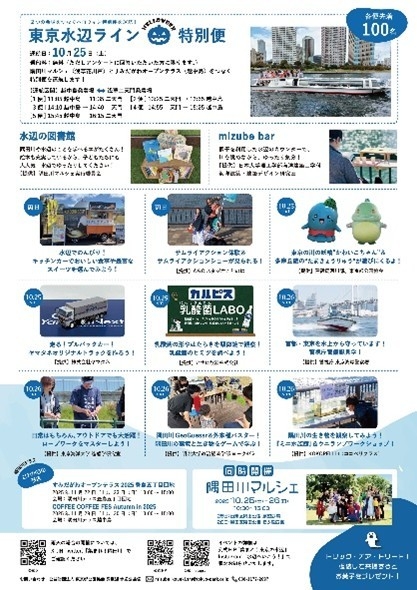 隅田川マルシェ(浅草花川戸)とすみだがわオープンテラス(越中島)をつなぐ特別便を運航します。