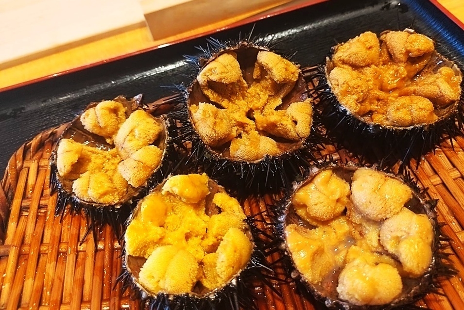毎朝、市場から仕入れた殻付きウニをお店で一つずつ丁寧にむきます。ミョウバンは一切使用せず、ウニ本来のフレッシュでクリーミーな味わいをお楽しみいただけます。産地は日によって異なり、北海道や三陸産のウニをご提供しています。