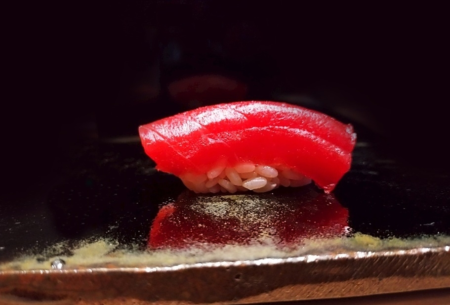米は水分も粘り気も少ない北海道「ななつぼし」の古米を使い、大将が理想とする口の中でほどけるよう、3種類の赤酢をブレンドし、本日のネタに合わせバランスの取れた舎利に仕上げます。