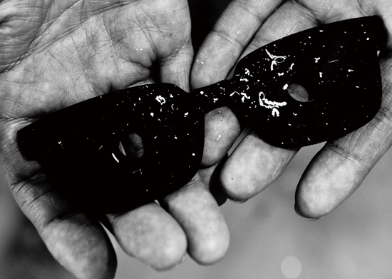 GYARDから生み出されるメガネはハンドクラフトによる独特なカットラインが特徴で、鯖江で主流の自動カットマシーンでは生み出せない抑揚ある曲線美が魅力です。また材料の下処理にも独自の工夫がされており、磨く工程も通常の2.5倍ほど多く手間暇が掛かっています。