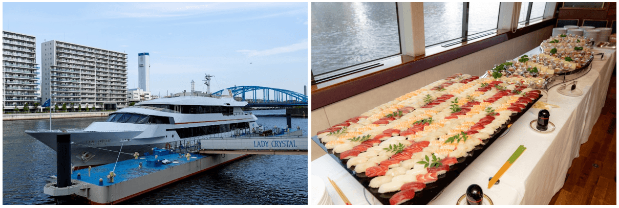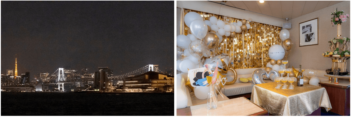 クルーズ船に乗り込み東京湾を周遊。有名ブランドのバッグやジュエリーを身につけ記念写真撮影も!