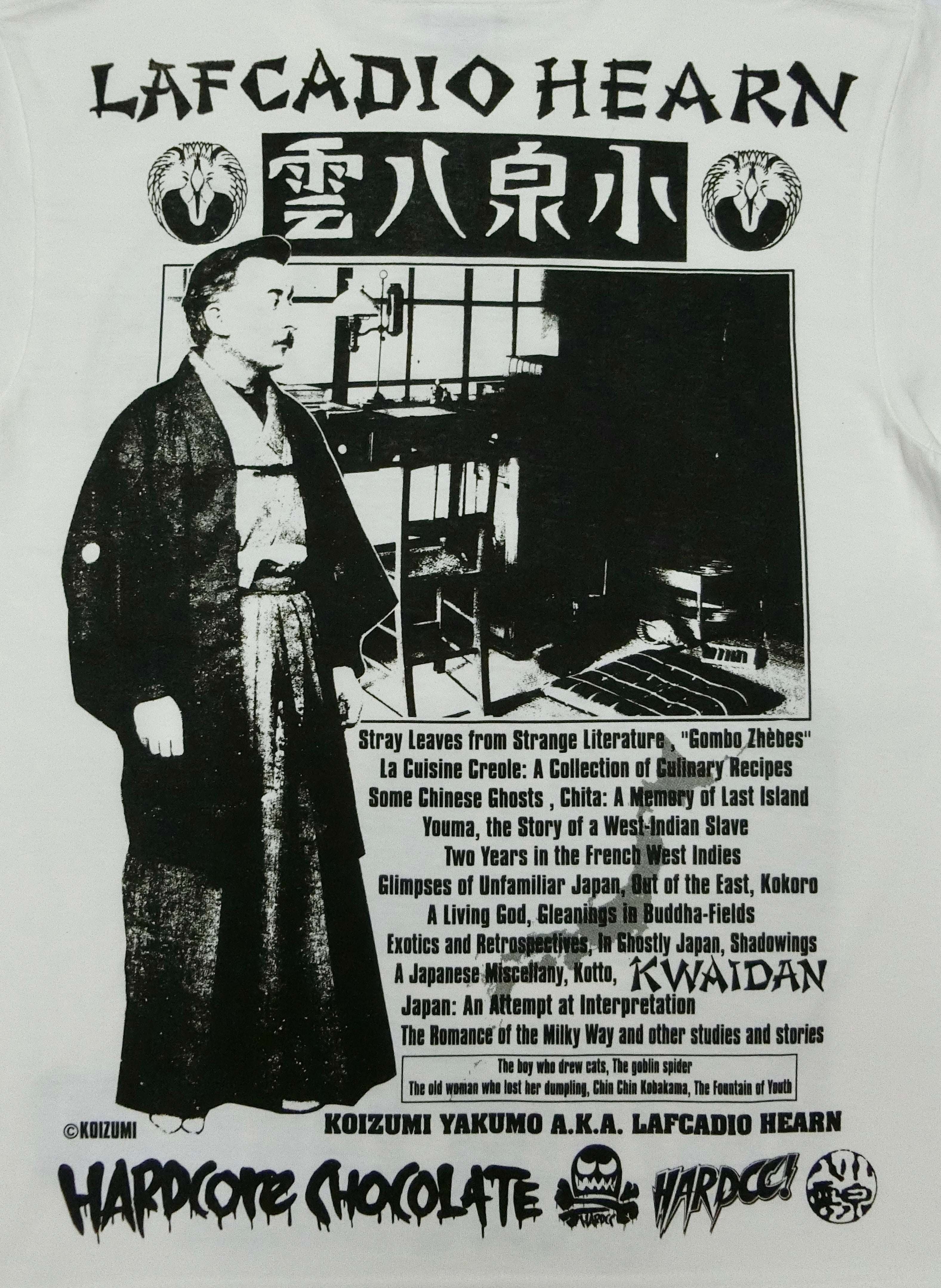 有限会社ハードコアチョコレート(本社:東京都中野区、代表取締役:宗方雅也、以下 ハードコアチョコレート)は、江戸川乱歩賞受賞作家の佐藤究、ジャーナリストの丸山ゴンザレスとの合同プロジェクトとして小泉八雲のTシャツ2種を2021年6月に発売いたしました。