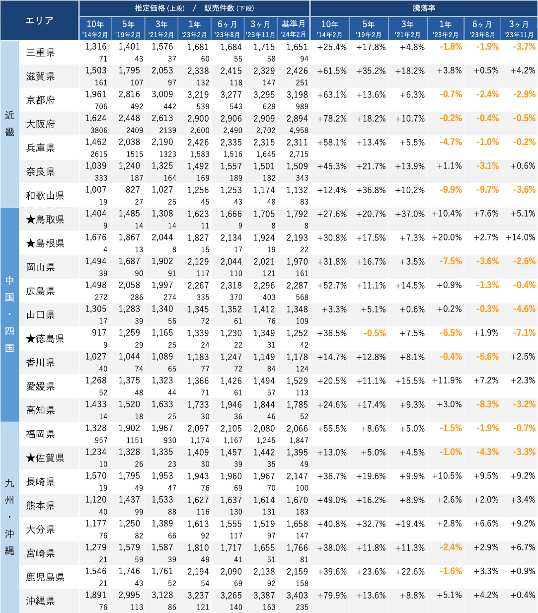 ・騰落率:1位「鹿児島県」+22.6%、2位「茨城県」+22.2%