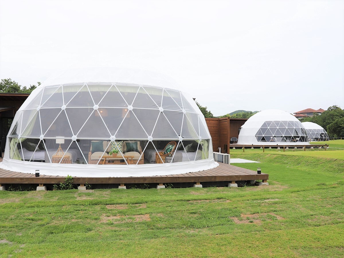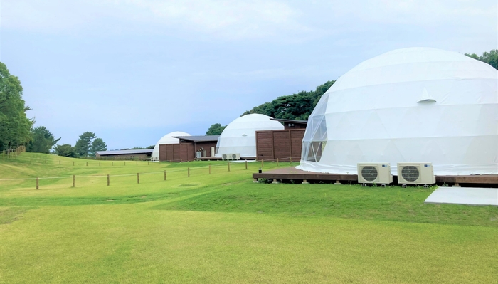 グランピングフィールドのコンセプトは、「満点の星空の下、芝の上で裸足で過ごせる極上グランピング」。