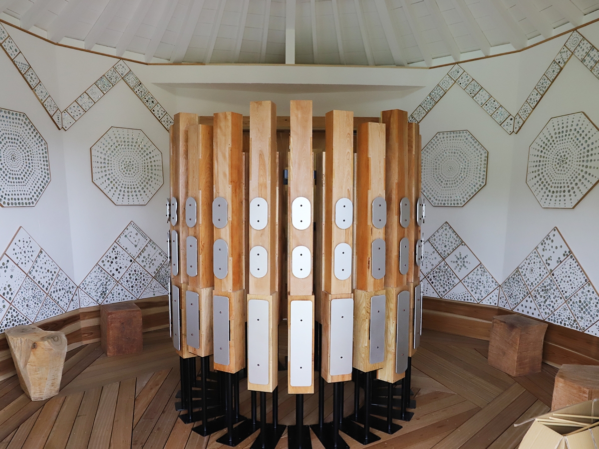 【ハーモニーハウス】「音」を感じるツリーハウス 内壁装飾は地元小学校の児童50人が制作したもの