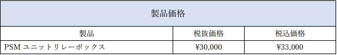 <PSMユニットリレーボックス 価格表>