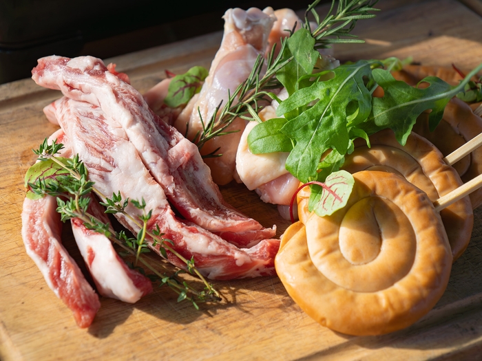 「Winter BBQ」では、グリルも楽しめる「BBQ食材」もご用意。イベリコ豚のリブフィンガーや但馬鶏手羽元、可愛らしい見た目の串付きトルネードソーセージなど盛りだくさんです。